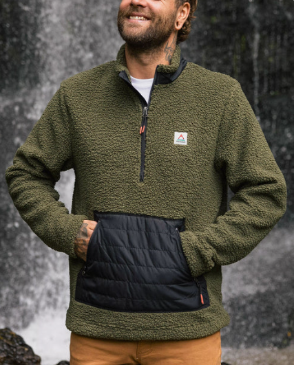 The Nomad Pullover is a versatile and comfortable piece that can be worn for any occasion. It is made with plush sherpa material that is perfect for keeping you warm in cold weather. The classic stand collar and kangaroo hand-warmer pocket add to the style and functionality of this pullover.