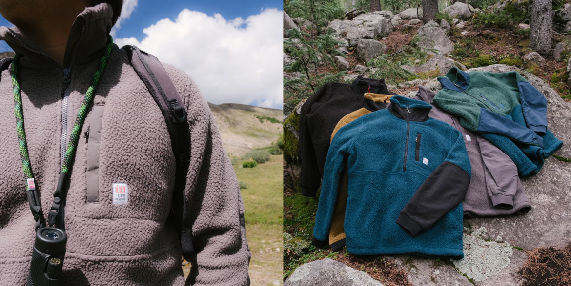 Topo’s contemporary take on a mountain classic, crafted from 100% recycled polyester fleece. An outdoor essential, the Mountain Fleece Pullover is 100% sure to keep you warm and comfortable up high or in the city. Built with reinforced DWR nylon overlays on the elbows and collar, this piece is sure to be a cool-weather essential for years to come.