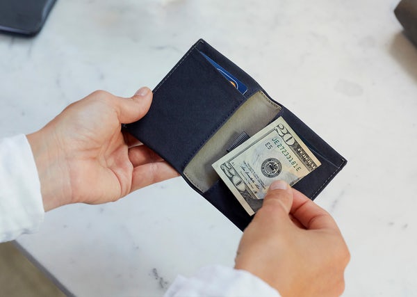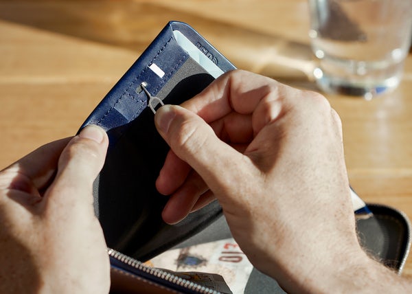 Bellroy’s original slim wallet, the Slim Sleeve has surprising storage for cards and bills in a super sleek, pocket-friendly design. That pull-tab really does work. With a quick action, it lets you get to your infrequently used cards to pick through for the one you need. The Baida nylon fabric in this wallet is both robust and highly water-resistant, and boasts a unique crinkled finish that feels great in hand.