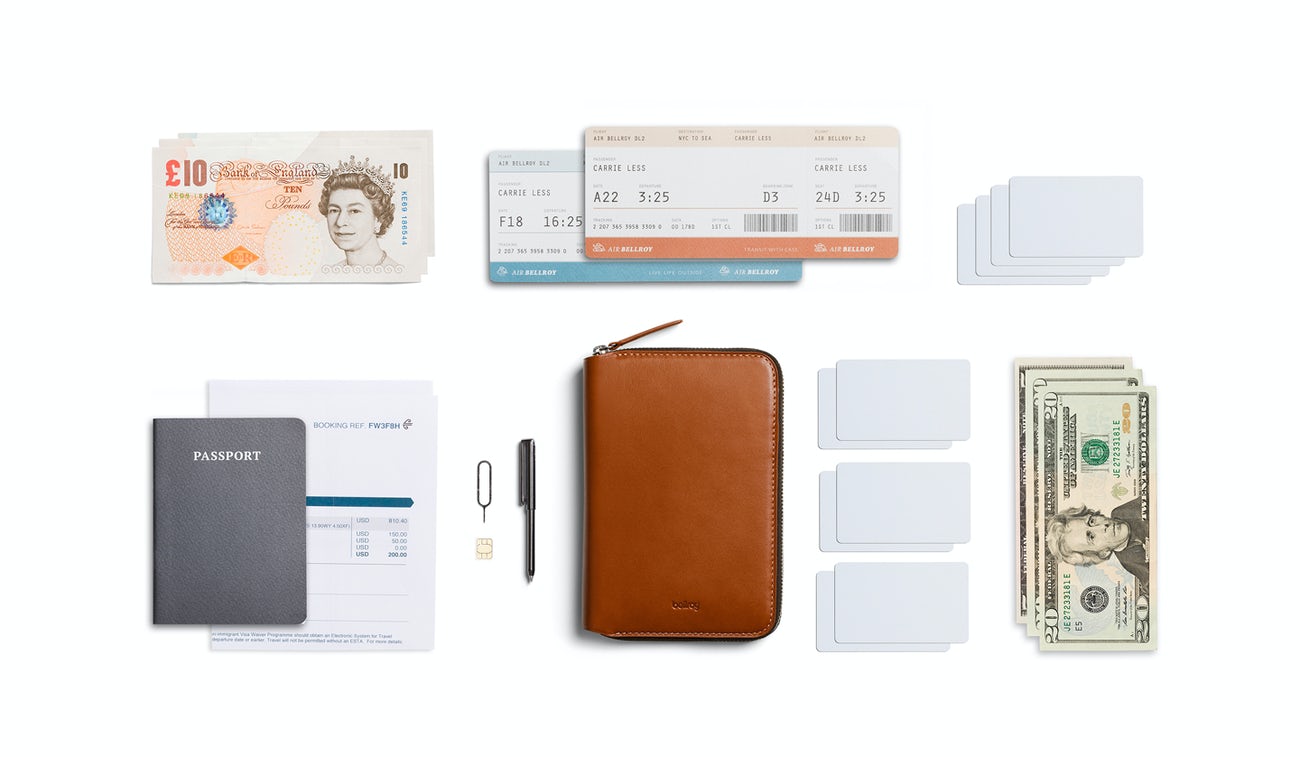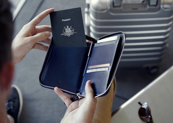 For peace of mind zipped up with your travel essentials, you can beat the Bellroy Travel Folio from both a style and performance perspective. This compact travel folio holds two passports, eight cards and cash hidden in the back. The zip closure allows for flexible storage without the risk of anything dropping out. Passports, tickets, check in and go.