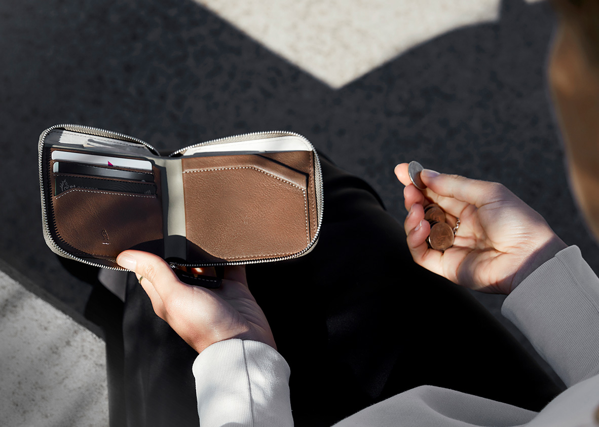 This functional and stylish little wallet from Bellroy unzips to reveal big flexible storage for cards, bills, coins and even a spare SIM. A high internal pocket stores coins securely and the zip prevents spills and it has space for 4 – 15+ cards.