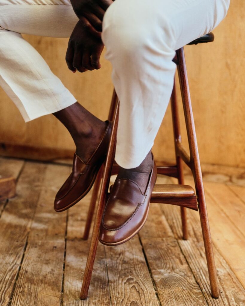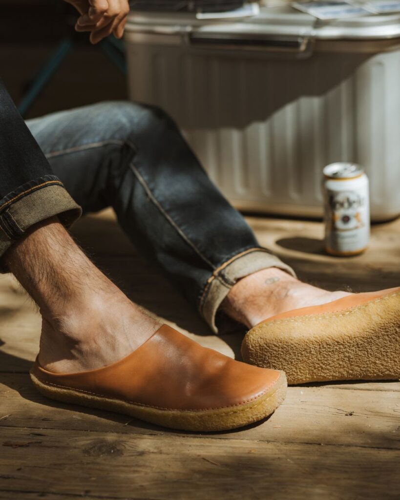 Constructed from full grain vegetable tanned leather with moc-toe stitching, this classic slip on will comfortably carry you from the boardroom to cocktails to weekend brunch.