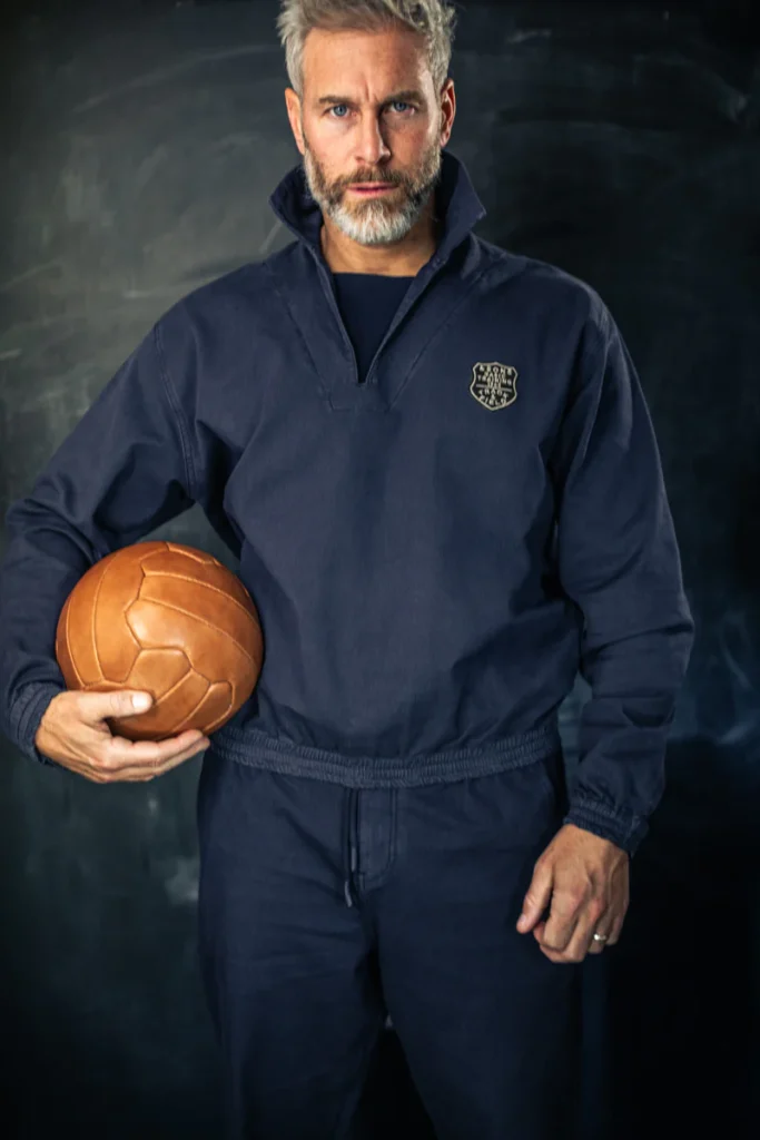 Made from a knit-look stretch woven fabric, the &SONS Coach Drill Top offers comfort and durability, with thoughtful details like a 1×1 rib insert at the neck, elasticated hem and cuffs, and twin needle top-stitching for added structure. The felt embroidered badge and adjustable snap cuffs add a touch of heritage to this modern classic, making it versatile enough to wear at home or out and about.