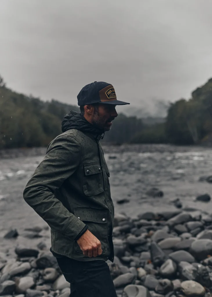 Channeling the utilitarian DNA of the iconic military liner, the Iron and Resin Hudson Jacket adds a sharp, contemporary edge to a classic silhouette. Constructed from durable nylon Fujitreck, it balances a rugged lineage with a sleek adaptability suited for modern life. Heritage details like ribbed cuffs and a clean profile pay respect to its surplus roots, resulting in a versatile layer built to endure—whether deployed as a standalone piece or worn as insulation against the cold.