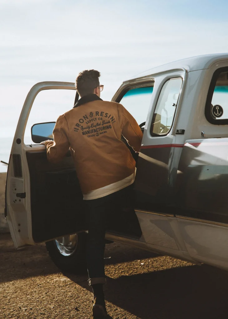 The interior is lined with custom Buffalo Flannel for warmth, while the exterior features a sharp, black accented corduroy collar and a heavy-duty Talon® zipper. With gusseted shoulders for unrestricted movement and custom Iron & Resin embroidery on the chest and back, it nails the classic service station aesthetic.