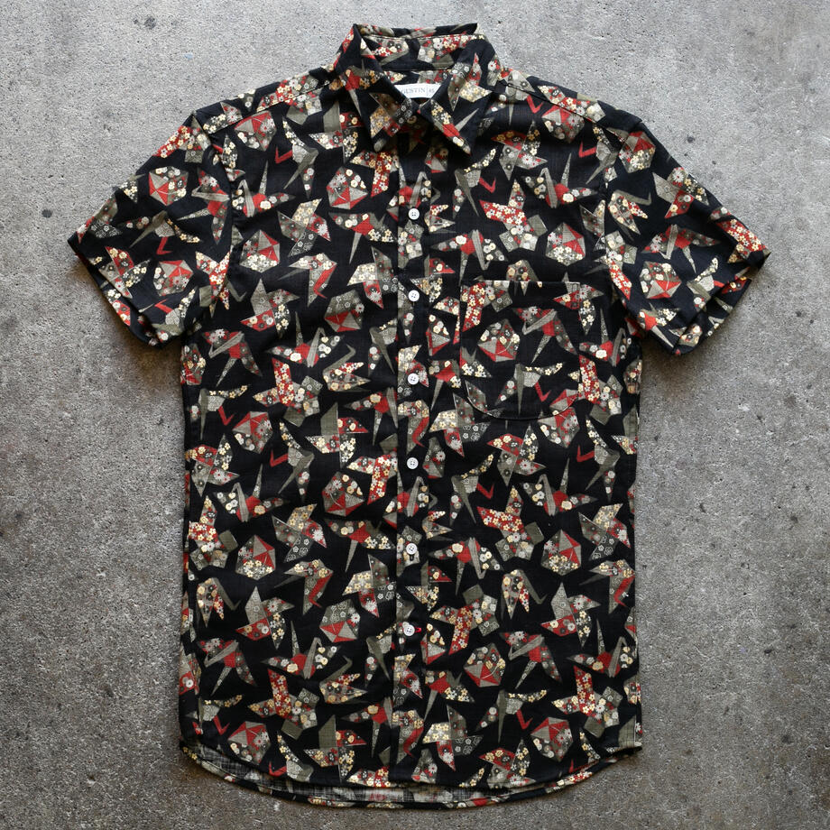 A homespun loose weave for supreme comfort paired with a retro Japanese-inspired print for old-school style. This is the Japan Retro Leisure Origami Shirt.