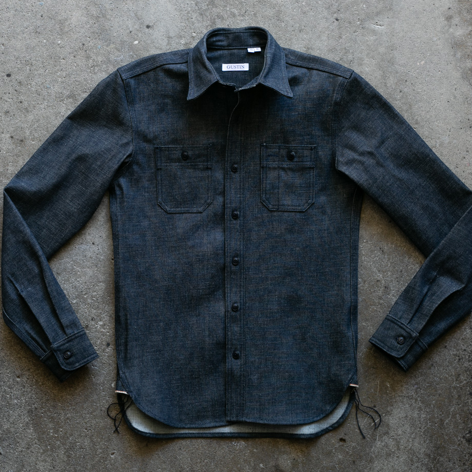 Gustin’s most popular selvedge, the Okayama Standard treated to our authentic workshirt style and tonal thread. This is a vision of pure, masterfully crafted, big character indigo selvedge paired with the ideal style to showcase the fabric.