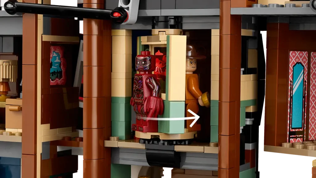 This feature takes the model from a static architectural display to a dynamic scene straight out of Season 4. The interior is accessible via an open back, revealing seven fully furnished spaces that are packed with Easter eggs for the eagle-eyed fan. You can explore the hallway, the dining room, the sitting room, and the chilling upstairs landing.