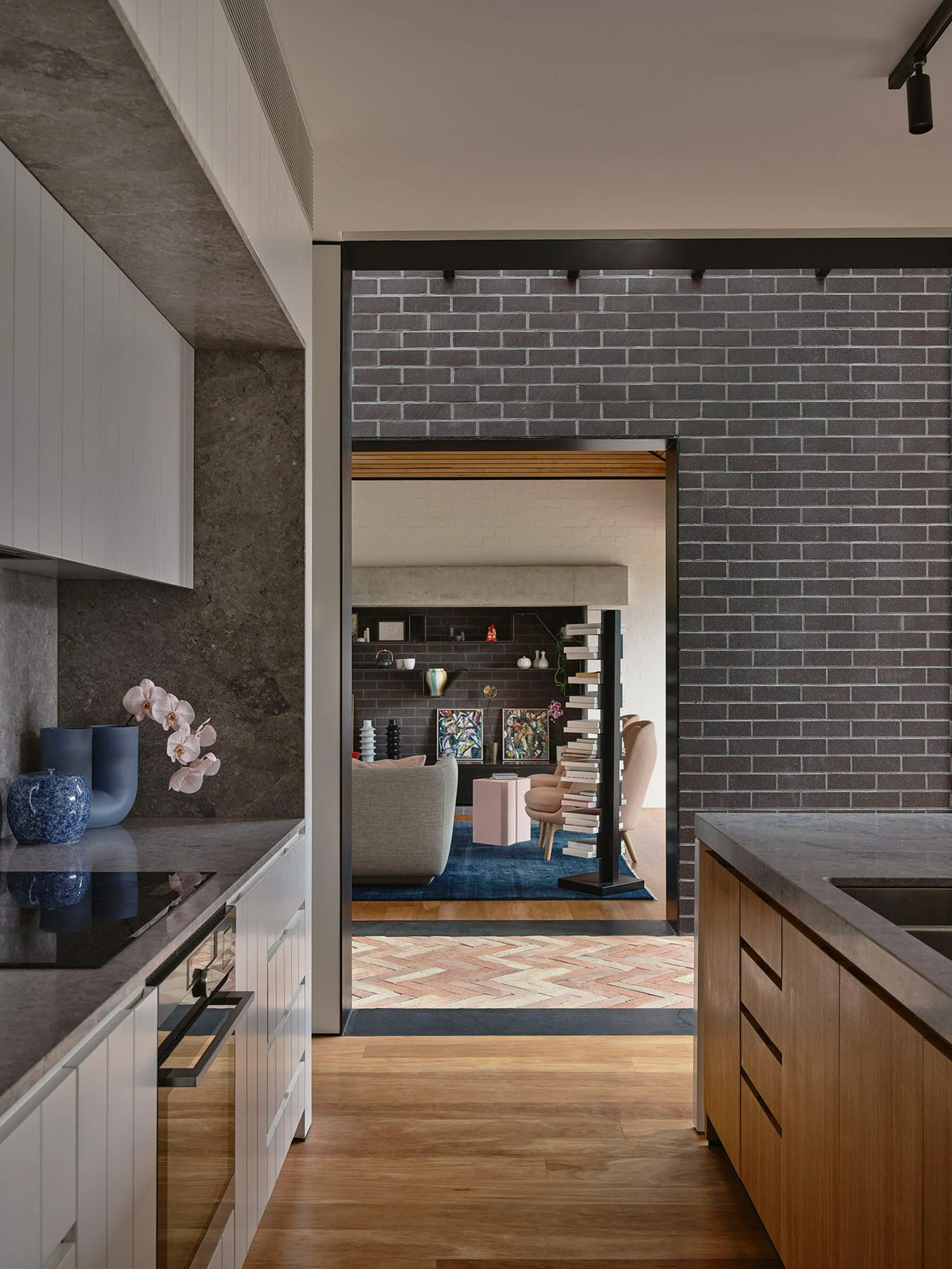 The first thing that will capture your imagination about this extraordinary property is its name, which has a captivating backstory. The word “Mygunyah,” which is proudly inscribed on the home’s parapet, is derived from an Australian Aboriginal language and means “my hut” or “my home.” The “Circus” part of the moniker refers to the nearby circular road system, and the two together paint a poetic picture of a home that is both a personal sanctuary and a part of its wider community. Originally built in the 1880s, Mygunyah was one of a pair of terraced homes, but Matt Gibson Architecture + Design has essentially doubled its area to better accommodate a bustling family of seven, all while paying homage to its storied past.