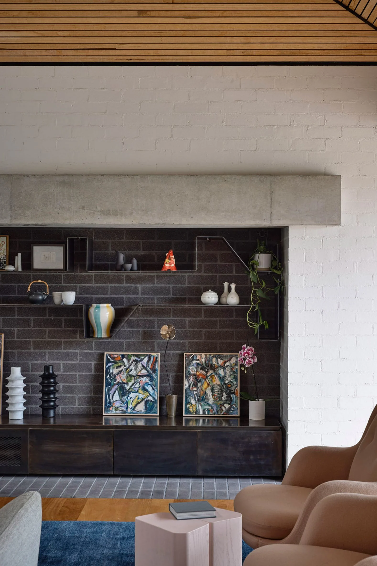 The true magic lies in the two new brick pavilions that sit to the side and rear of the original structure. They’re both distinct in their design, yet somehow work together in an architectural symphony. The first, on the western side of the home, replaces a former strip of garden with a magnificent volume crafted from striking black brick.
