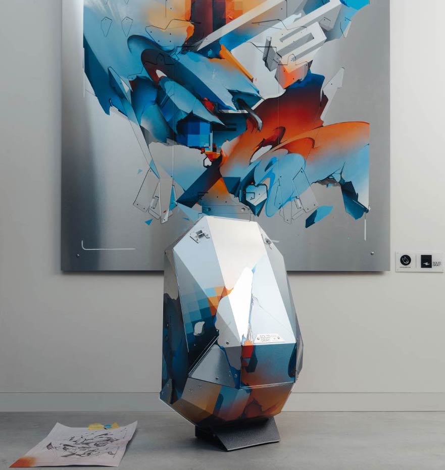 They also offer a number of unique, limited edition collaborations such as the amazing DOES Concrete GEM Backpack which is limited to just 20 numbered pieces and this collaboration fuses DOES’ original artwork, crafted on aluminium, with Solid Gray’s futuristic backpack design. You can see the stunning collab below: