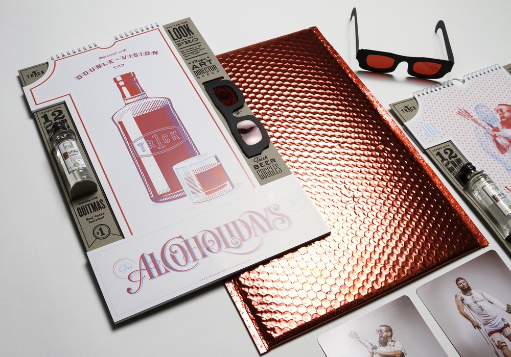 One Trick Pony created their immensely eye-catching Alcoholidays calendar to celebrate the 10th anniversary of their brand an it is a 3D representation of some of the drunken nights that they have enjoyed together. Replete with a set of 3D glasses, the calendar has 12 men looking respectable under the cold light of day but when you put on the glasses, their drunkenness is revealed through the use of a two colour overprint technique.