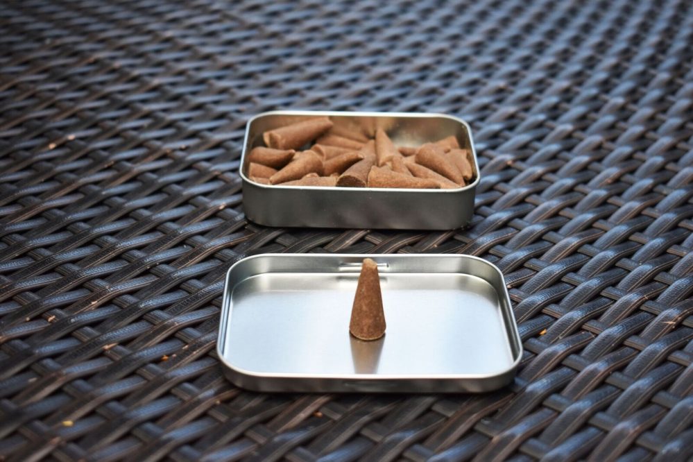 Incredibly easy to light up, you just need to place the incense cone on a heatproof, non-flammable holder. The lid of the incense cone tin works well for this. Expose the tip of the incense cone to the flame for approximately 40 seconds and to extinguish the flame just blow on the cone gently. The cone will be left with a glowing red ember that emits the scented smoke on its own and be sure to enjoy the incense aroma in a well-ventilated room.