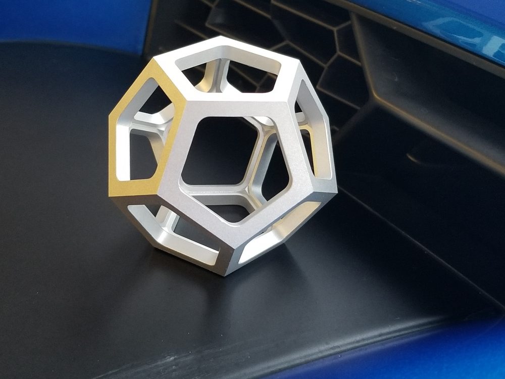 Each Dodecahedron has a height of 2 inches (51 mm) and a maximum width of 2.5 inches (63.5 mm) and will add a touch of class to your desk or wherever you choose to display this eye-catching piece of design. It is just smaller than a tennis ball and each one weighs 1.16 oz. (33 g). A fun fact about the creation of these Da Vinci Dodecahedrons is that approximately 24 oz (1.4 lbs) of material is removed to end up with the final shape which means around 95% of the material is machined away to create the finished product.