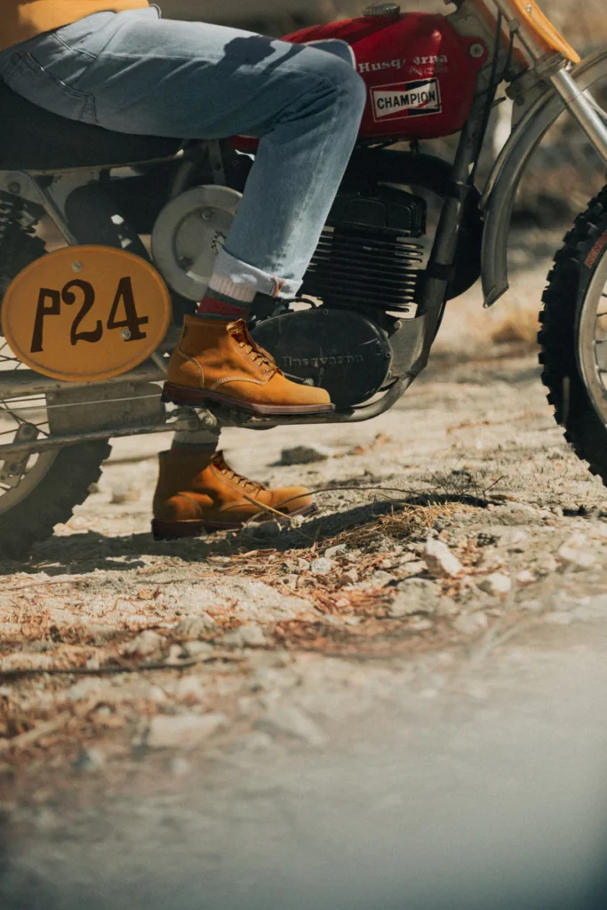 They are inspired by the kind of boots built to hold up in the desert, behind the wheel of a race car, or on a movie set—footwear that earned its place through sheer performance. They are honest, hard-wearing, and quietly iconic, designed not for grabbing attention, but because they simply work.