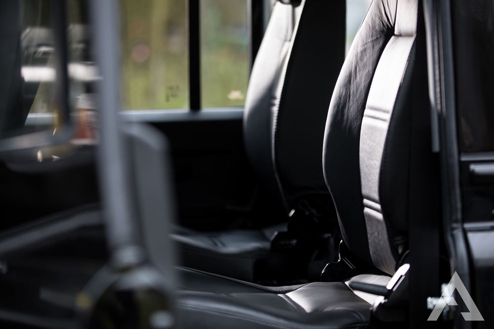 When moving to the inside of the Arkonik MONARCH Land Rover Defender 110, things are just as impressive. Here you’ll find super cool and stealthy black leather seating trim, ridiculously comfortable Modular front row seats, 2 premium high back centre row seats, bench seats in the load area, a leather stitched gear gaiter, air conditioning and an Alpine head unit with Bluetooth and Hands-free functionality. The ultimate in luxury interiors which really does justice to the overall excellence of the machine and ensures that you’ll always be riding around in considerable comfort.