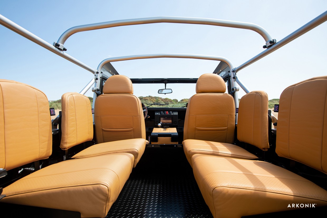 The Arkonik So-Cal Land Rover Defender has the rather eye-watering price tag of $170k but when you take into account the quality of the craftsmanship and materials used throughout the build, it becomes a lot more justified. This 6-seater will deliver comfort levels off the charts and a smooth ride ideal for road trips both big and small. The So-Cal is born ready to hit the beach, cruising along the Californian coastline with the soft-top down and the Summer tunes pumping, thanks to a cool Pioneer® sound system.