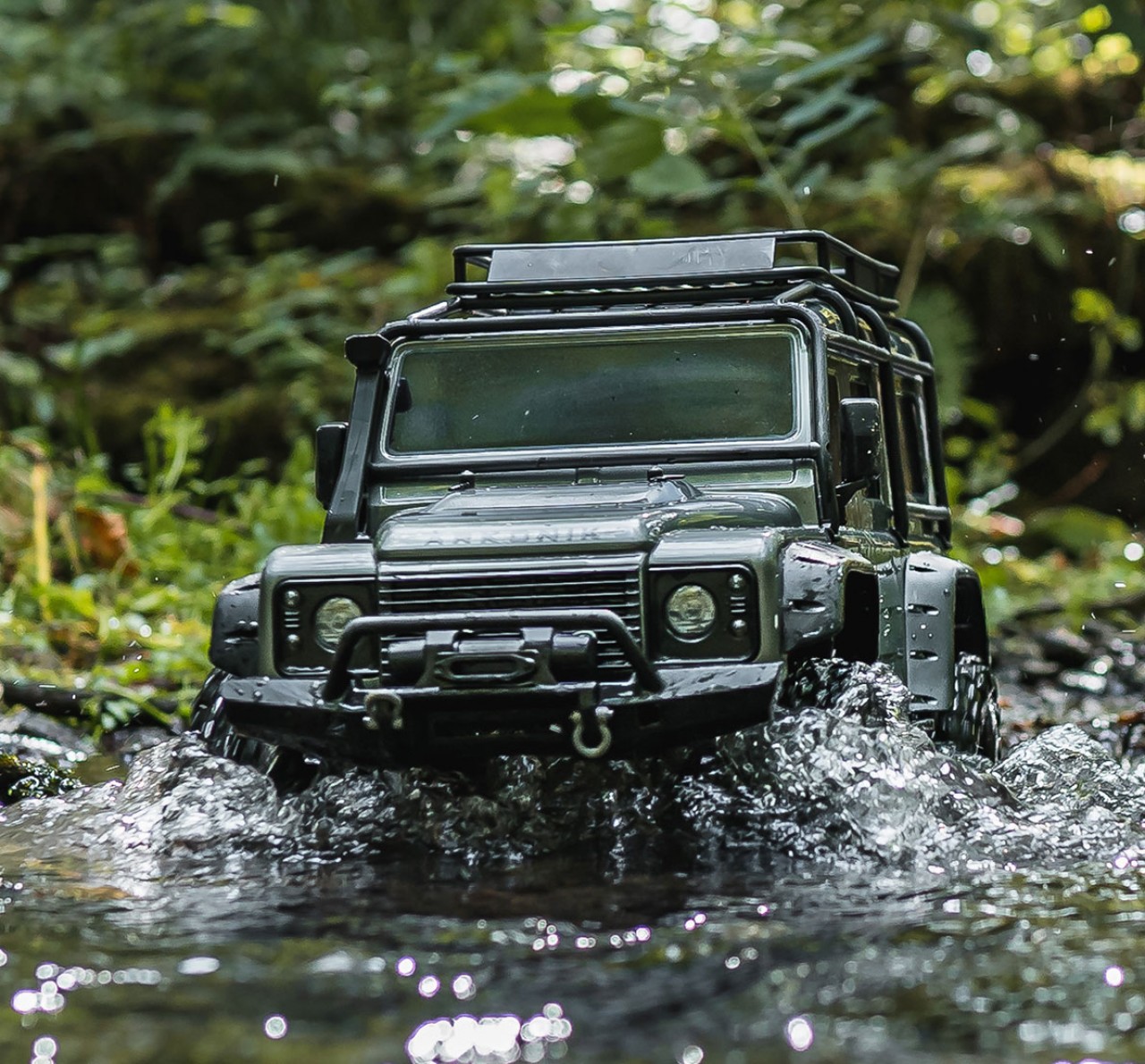 Underneath the authentic looking body is a machine that has been crafted for extreme off-road capability, taking you to new places and new adventures – just on a smaller scale. Whether enjoying outdoor trails or getting technical on the rocky slopes, the remote-locking front and rear differentials and high/low range transmission of this Arkonik x Traxxas® R/C Defender deliver unparalleled driving versatility.
