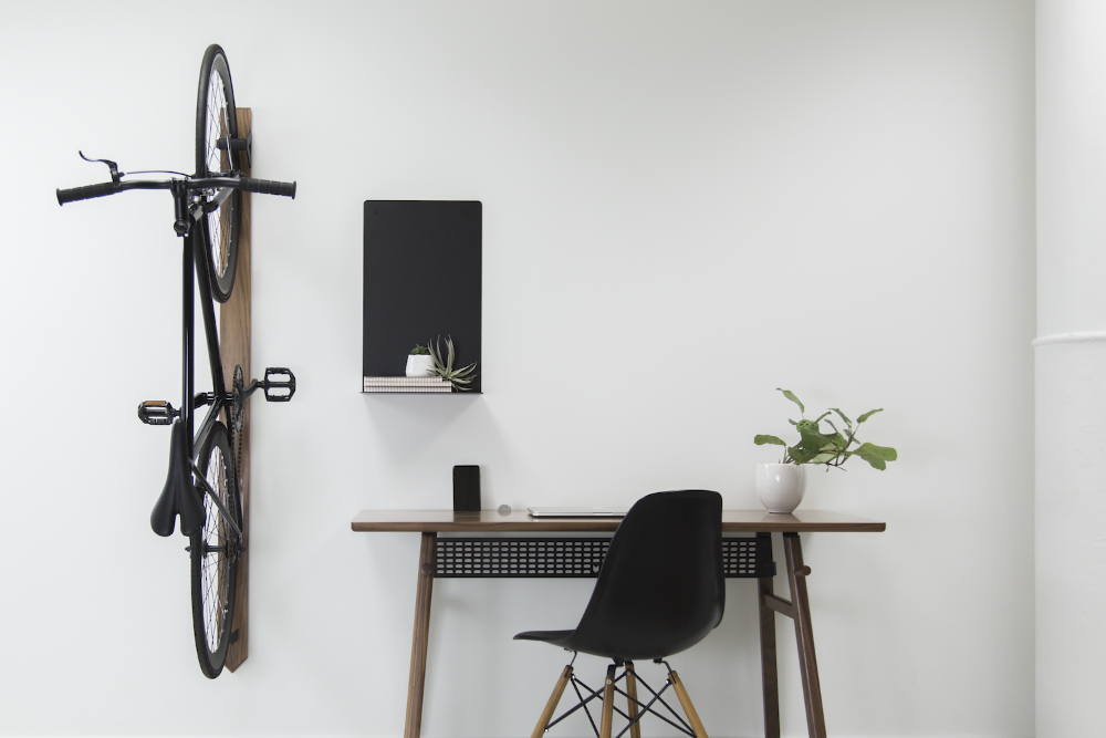 If you prefer to keep your bike inside you’ll know what a space hog it can be in a cramped hallway but this Artifox Bike Rack ($199) is a far more stylish and space friendly solution and will actually add an aesthetic impact to your home office. This vertical bike RACK brings your ride out from the garage and into your living space. Its unique mounting system self-levels along any surface and stays hidden with a cleverly placed magnet. Constructed from solid hardwood and powder coated steel, RACK handles most sizes and styles of bikes and works well in tight spaces. ($199)