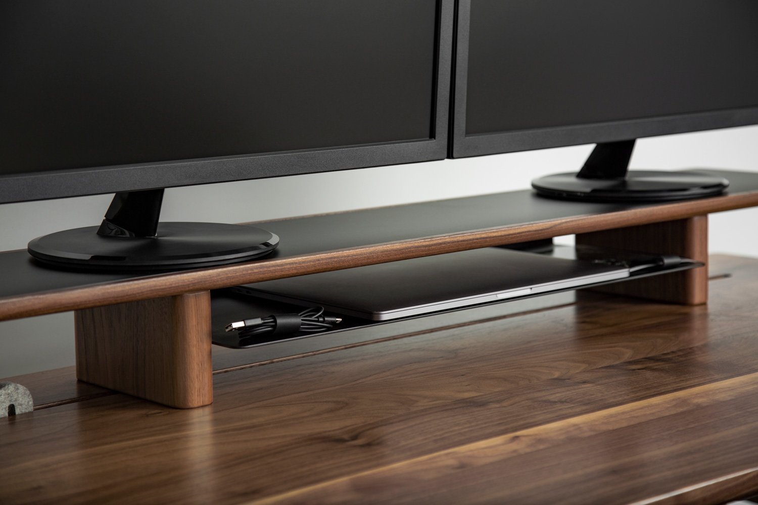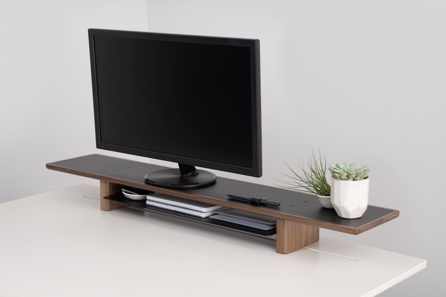 An elevate screen is much better for your posture but gone are the days of just shoving some books under there. Ramp up the classiness of your workspace with the excellent looking Artifox Lift ($220) which is both eye-catchingly stylish and provides another layer of functionality to your desk. It provides multi-level storage to display monitors, notebooks, plants and more. Designed with the DESK 02 in mind, but works with nearly any surface. Pair with PEGS and BANDS for endless magnetic styling options. The lower shelf holds a 15” macbook, keyboard, mouse, and notebooks. ($220)