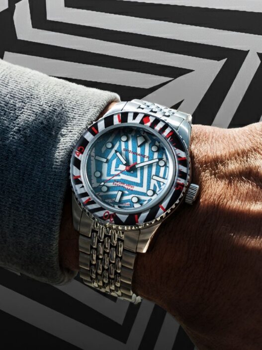Each Group B Watch in Corsica Blue from Autodromo comes delivered in a hand-crafted aluminium box with number plaque, and the integrated bracelet can be removed with a spring bar tool so that the watch can be worn with a strap if desired. The overall aesthetic of the Group B is a knowing nod to the “high-tech” design language of the early 1980s, with a high contrast dial inspired by a period racing tachometer.