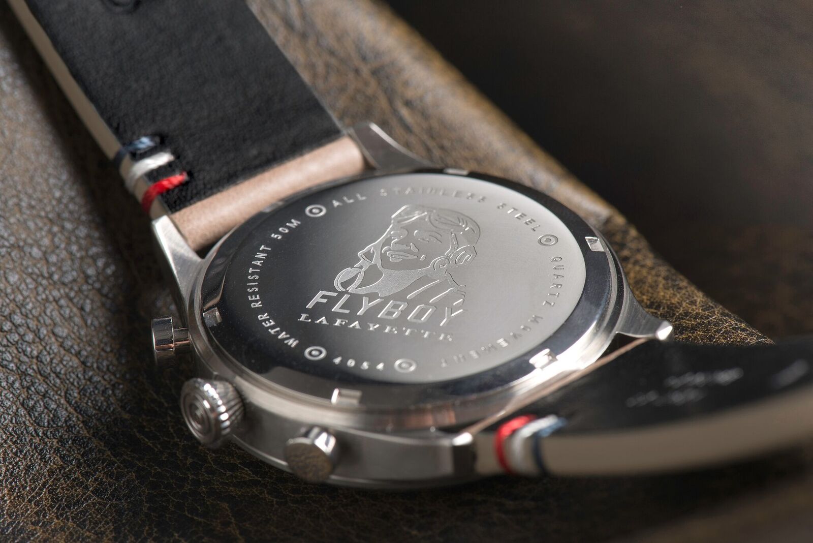 The AVI-8 Flyboy Lafayette Edition Watch takes its name and design inspiration from a lesser known flying squadron by the name of the Lafayette Escadrille, which consisted of 38 pilots who were known as “the founding fathers of American combat aviation”. This squadron flew for France beginning in 1916, before the United States entered World War I, and they were known as the very nucleus of the U.S. Army Air Service when it came into being in 1918.