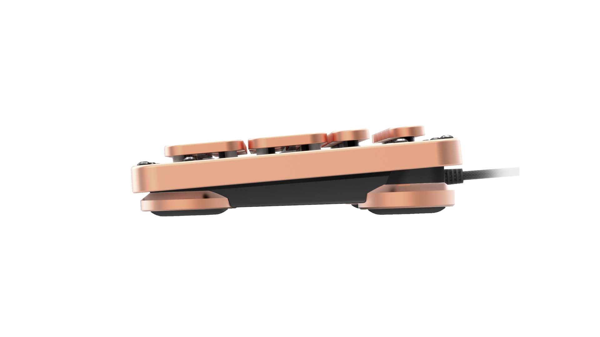 Striking in the extreme, the Azio Retro Classic Keyboards are forged with zinc aluminum alloy, polished and then plated into a stunning black chrome (or satin-copper finish) which serves as the perfect accompaniment to the leather top plate. Following this, hex bolts are added for structural enhancements and to deliver a pleasing, industrial vintage element to visual impact of the keyboard.