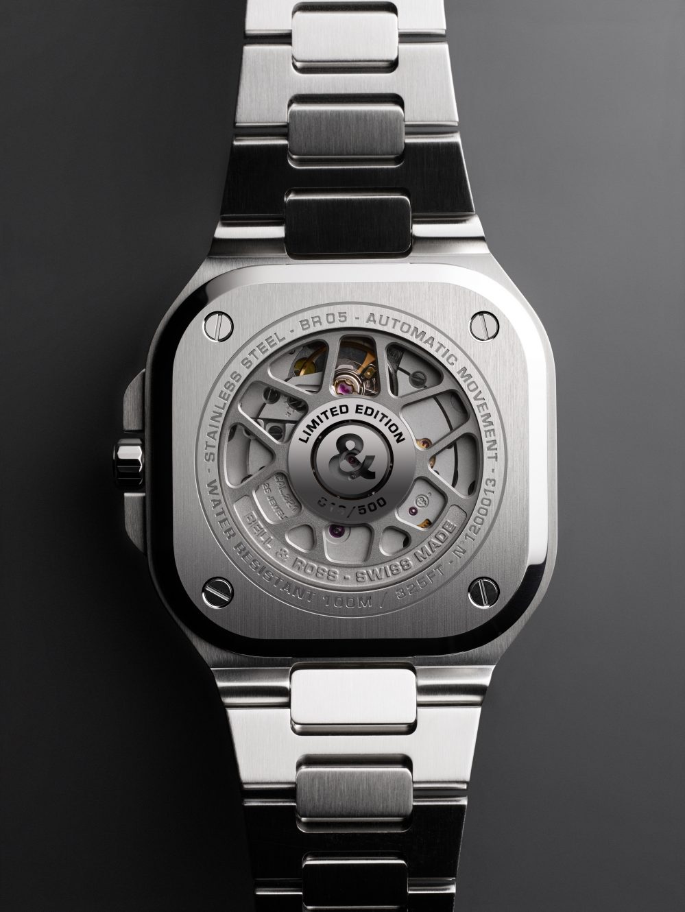 It is the finish of the BR05 that really catches the eye and gives the timepiece an aesthetic quite unlike any other. The 40mm case is angular in design and the satin finished surfaces are completely flat, in a feature that you seldom see in timepieces today but one that we’re loving here at The Coolector. The polished bevels on this collection of watches from Bell & Ross are designed to emphasise and enhance the volumes that they contain within and they do a first class job of exactly that.