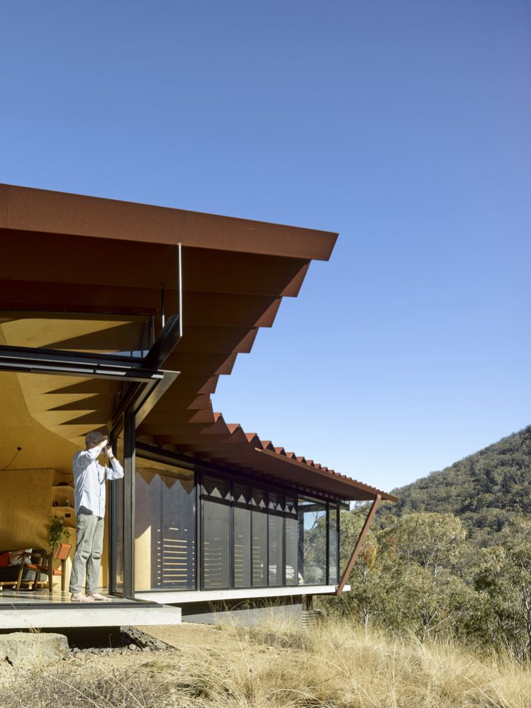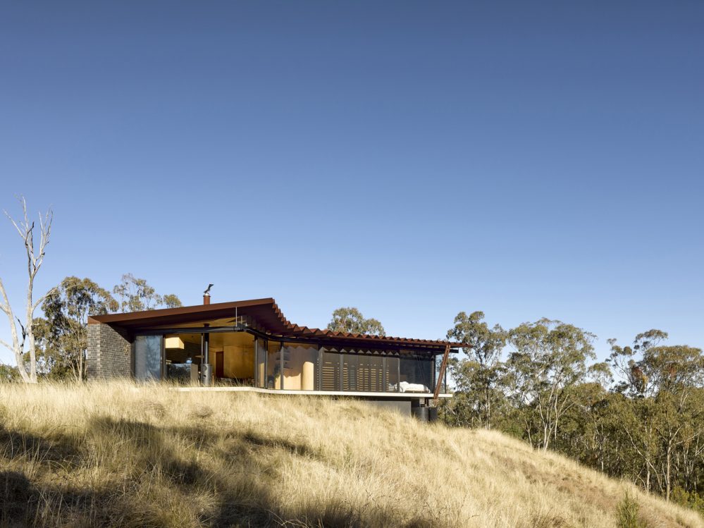 The Bellbird Retreat House from Steendijk Architects puts a lot of emphasis on sustainability and boasts plenty of design features that make this weekend retreat as environmentally friendly as possible. From rainwater and electricity harvesting to passive design measures which use the building’s mass and orientation to deliver year-round thermal comfort, it’s clear this is a house with an eco-conscience. With a site susceptible to devastating bushfires, the inspired fire-resistant roof design eliminated combustible timber rafters by utilising the structural capacity of steel pleats to create a single span structure with unsupported cantilevered eaves.
