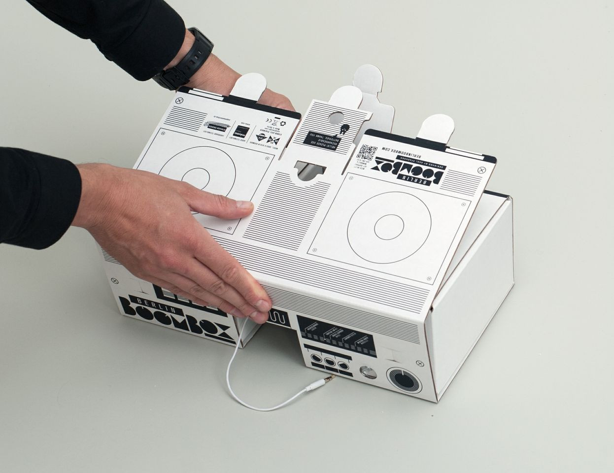 It is a modern spin on boomboxes of old and boasts minimalist graphic art on the simple construct that is a real eye-catcher. Constructed from heavy duty corrugated cardboard (so, it’s much more lightweight than the 80s iterations), the Berlin Boombox is delivered in a construction kit so you’ll have the pleasure of putting your new music conveyor together yourself – but, fear not, it’s not a technical process, requires no tools and takes just a couple of minutes. Take a look at this great new take on a classic below: