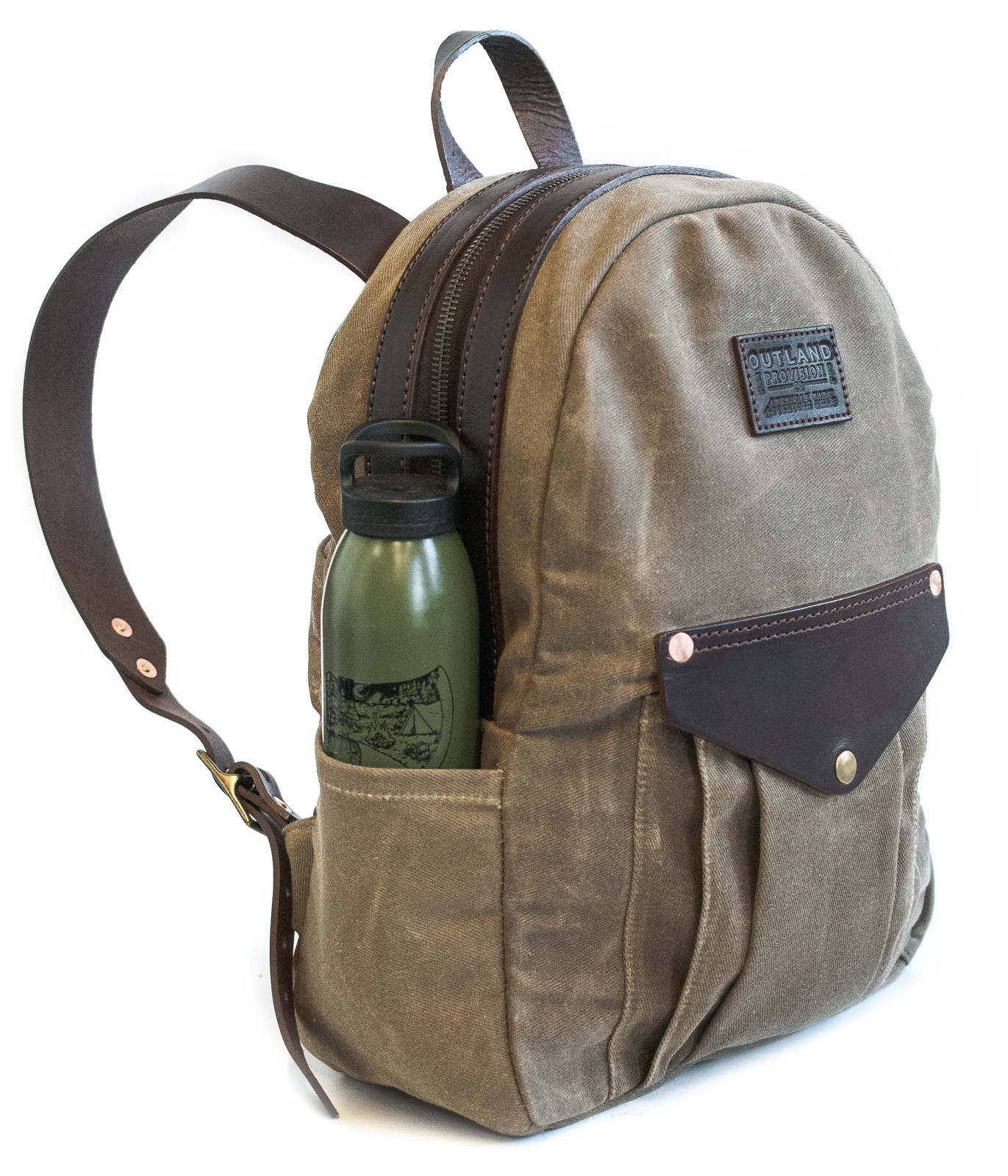The Land Pack boasts an impressive line up of features that highlight its heightened quality and some of the most eye-opening include premium swiss RIRI zipper, two side water bottle pockets, solid brass and copper hardware, thick 8oz american sourced bridle leather accents and a 22oz waxed twill canvas exterior.