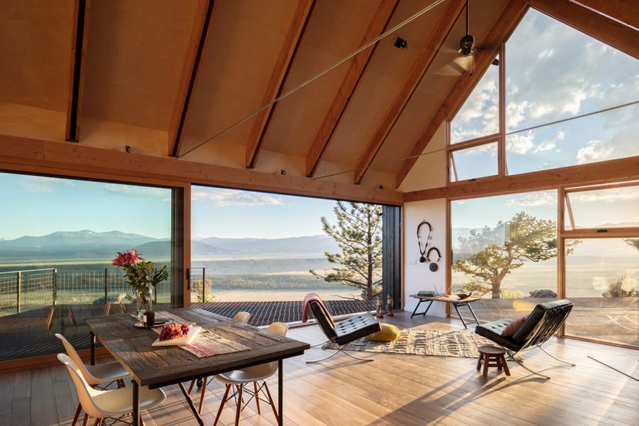 Locations don’t come much more breathtaking than that which is afforded to the Big Cabin, Little Cabin property. This phenomenal piece of architecture is perched high on a rocky cliff which overlooks Colorado’s Sangre de Cristo mountains and the pair of cabins (one big, one small, as you might expect) are a nod to the area’s early vernacular buildings and boast gabled roofs and rustic, traditional materials throughout.