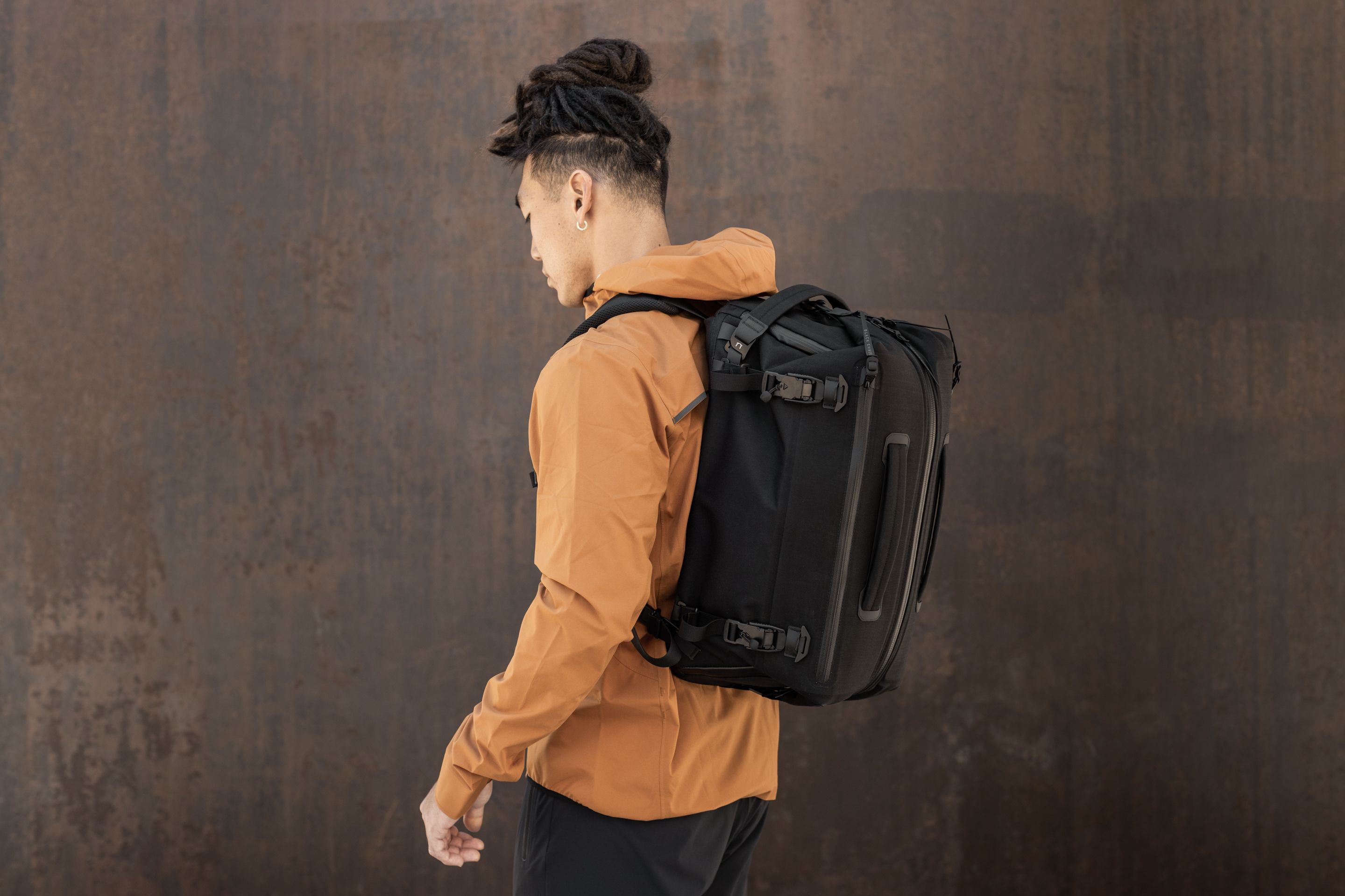 This brilliantly versatile carry has traditional duffel style handles which allows you to carry it for short distances, such as through the airport, in style but when the time comes to walk through the city to find your hotel, the DEX definitely excels itself. It boasts a composite build with a lightweight Cordura RN66 shell and a strategically laser cut and bonded hypalon panels which give it a robustness and streamlined aesthetic beyond compare. In the top pocket of the DEX Modular Duffel Packs you’ll find the Fidlock V-Buckle which has a boarding kit within that makes travelling, be it by plane or car, a doddle.