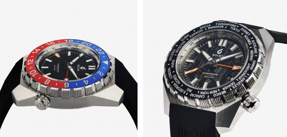 Considering these watches are available for under $800, the BOLDR Globetrotter Automatic collection is certainly punching above its weight in terms of the materials and first class specifications of these watches. The BOLDR Globetrotter is a tough, hard wearing and adventure ready GMT dive watch which takes the iconic and eye-catching angular BOLDR design one step further and delivers a watch quite unlike any other. Built to be tough enough for any exploration, the Globetrotter’s GMT function tracks two timezones, all the time.