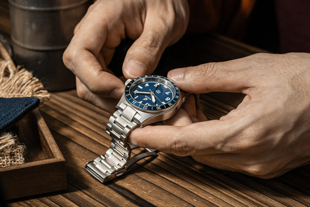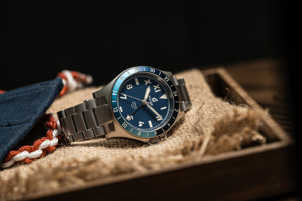 What truly sets the Maasi Mara GMT apart is its striking California dial, a timeless design that features half-Arabic and half-Roman numerals, a layout that never fails to turn heads. The dial is finished in a bold matt blue, and its vibrant colour shines through the flat sapphire crystal lens, which is treated with an anti-reflective coating for enhanced visibility. The custom hands are coated with Japan LumiNova®, ensuring readability even in the darkest environments—a must-have for night-time adventurers.