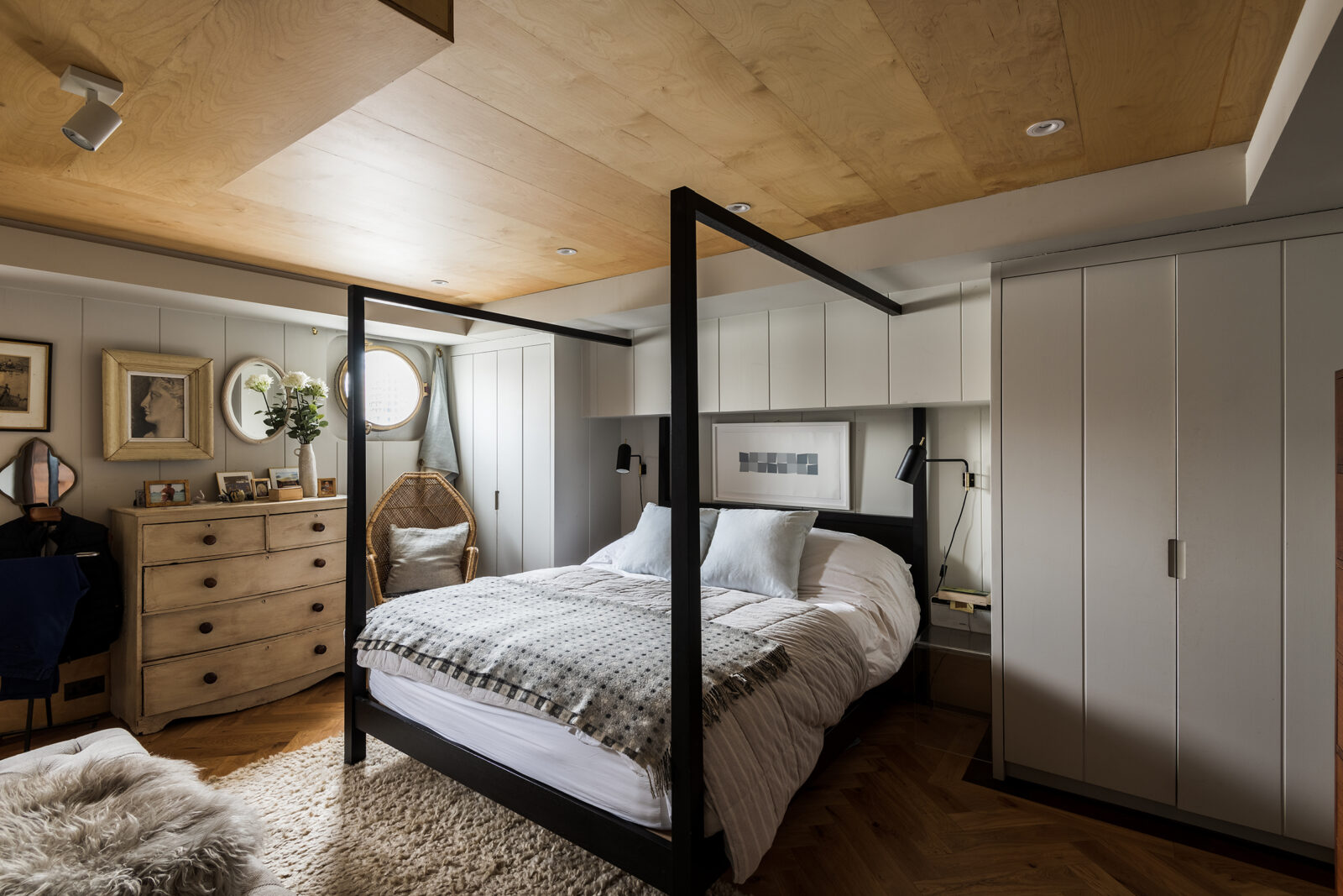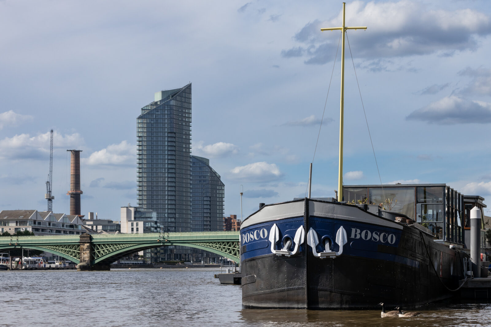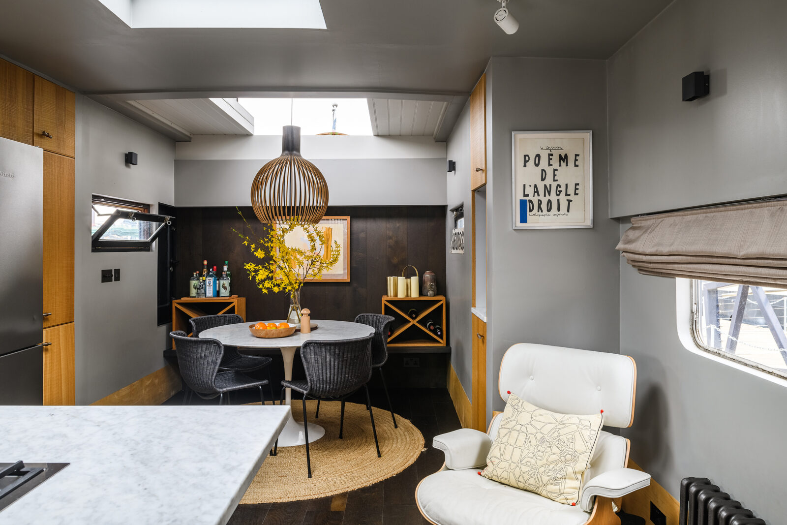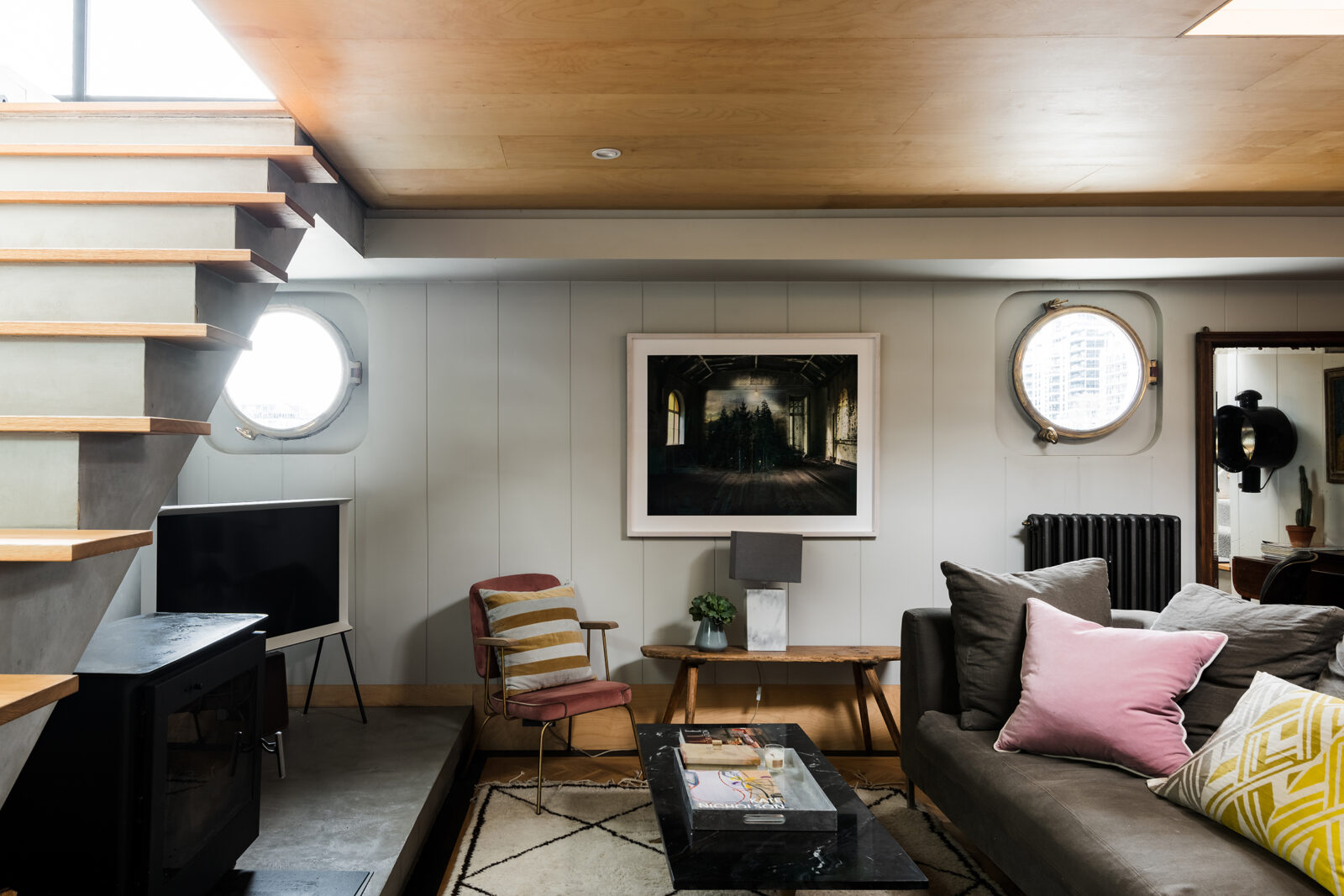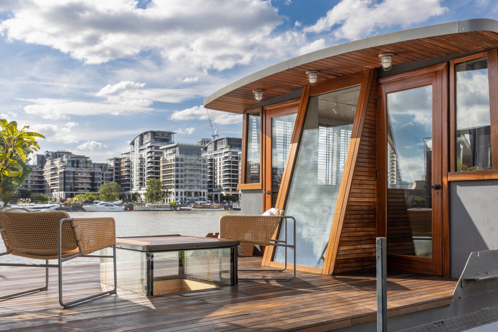 The light-filled entrance, accessed from the central deck, delivers broad, unbroken views across the Thames and over to Imperial Wharf on the North Bank. The space below deck has been broken into three parts, each with its own staircase. The main bedroom and en suite bathroom lie at one end, the childrens’ quarters at the other, and there are social spaces in the middle. Got a spare £1.5m? A life on the Thames awaits.