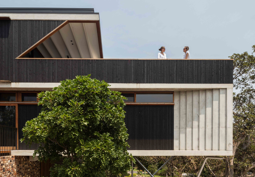 This carefully crafted timber spine of Breezeway House warmly welcomes occupants and ensures there is easy access to dynamic bedroom spaces that can open to each other as well as to a series of semi-enclosed garden rooms. Surface sliding doors, high level sliding panels and louvres are included to add to a spatial ambiguity between being interiors and exteriors of the home, which is reflected in its materiality. The breezeway continues through to a balcony amongst the canopy of the fig trees and is supported above the ground by an imposing, self-bracing bent steel post.