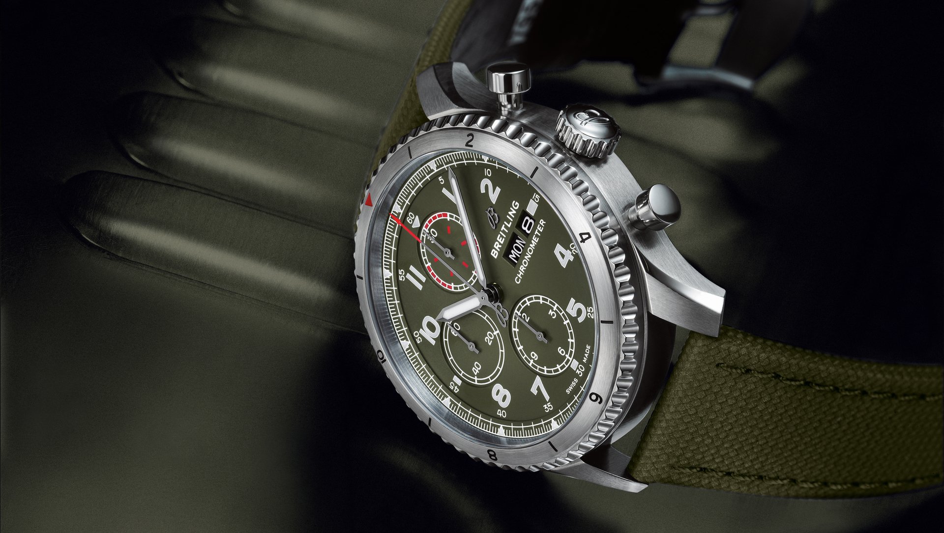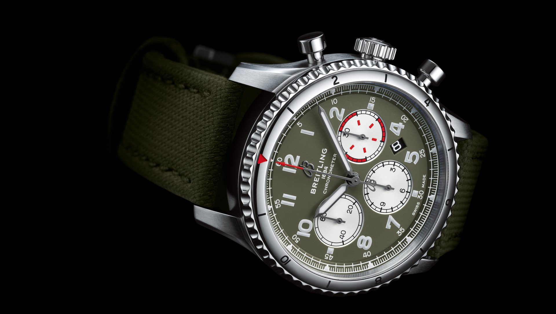 These three new watches from master Swiss watchmakers, Breitling – the Aviator 8 B01 Chronograph 43 Curtiss Warhawk, the Aviator 8 Chronograph 43 Curtiss Warhawk, and the Aviator 8 Automatic 41 Curtiss Warhawk – are a nod to the partnership between two true aviation trailblazers. Somewhat fittingly, they do it with features that recall one of Breitling’s early pilot’s watches, the iconic Reference 768, which had a rotating bezel and distinctive triangular pointer that made it an instant hit with aviators.