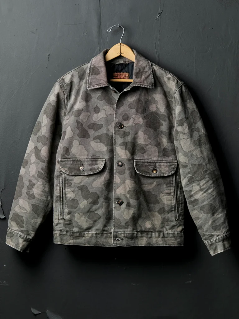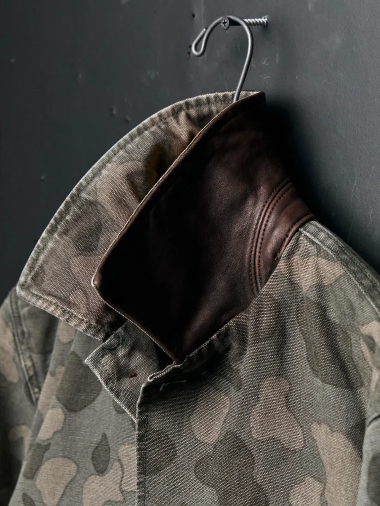 The camo pattern is understated and mature, ensuring it avoids any high-street camouflage clichés, instead grounding the coat in a vintage, military-utility aesthetic. This masterful blend of rugged construction, heritage materials, and considered fit culminates in a coat that demands to be used.
