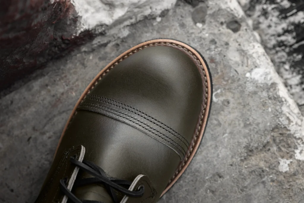 The six-inch boot’s signature feature is its unmistakable leather toe cap, a distinctive and highly durable detail that sets it apart from all others. Built with a Goodyear welt and Puritan triple-stitch construction, these boots are an absolute fortress, designed to be re-soled and cherished for years, even decades.