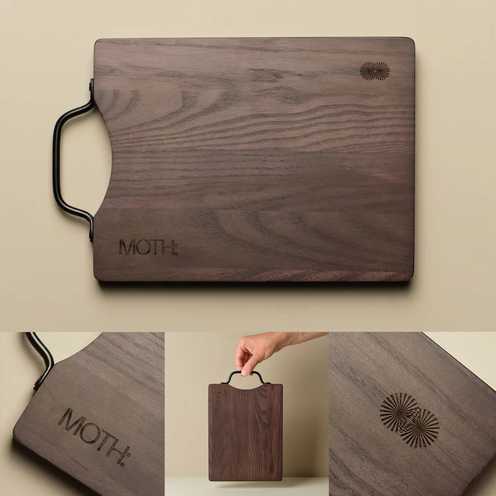 The centerpiece is the Citrus Chopping Board. Forget your oversized wooden block that belongs next to the sink. This bespoke, perfectly proportioned board is crafted from solid ash, which has been carbonised using Shou Sugi Ban, an ancient Japanese technique that involves charring the wood to achieve a dramatic, deep black colour and superior durability. It’s functional art, perfectly sized for meticulously slicing citrus garnishes or prepping your amuse-bouches. Chop chop, indeed.
