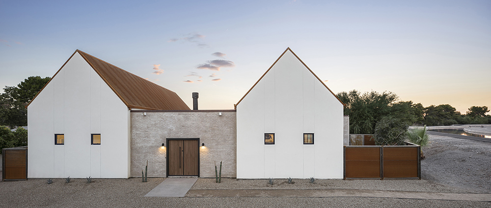 Ranch Mine are a husband and wife team of Cavin and Claire Costello who operate out of Phoenix Arizona and, it’s fair to say, the mighty impressive Canal House is one of their biggest design triumphs to date. This eye-catching piece of architectural design has an aesthetic superiority that is off the charts and it is a new build home which takes its inspiration from the forms of the missions in southern Arizona and can be found on a left over, oddly shaped vacant lot adjacent to the Arizona Canal.