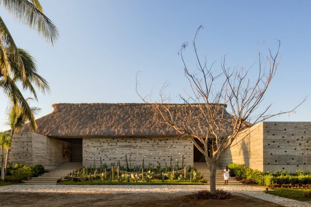 The roof style of Casa Cova from Anonimous, which draws upon the local vernacular, helps keep the interior nice and cool by delivering shade and by letting heat to escape upward. In addition to dried palm fronds, locally sourced materials like golden-brown parota wood were deployed throughout the home and give it a pleasingly Mexican authenticity.