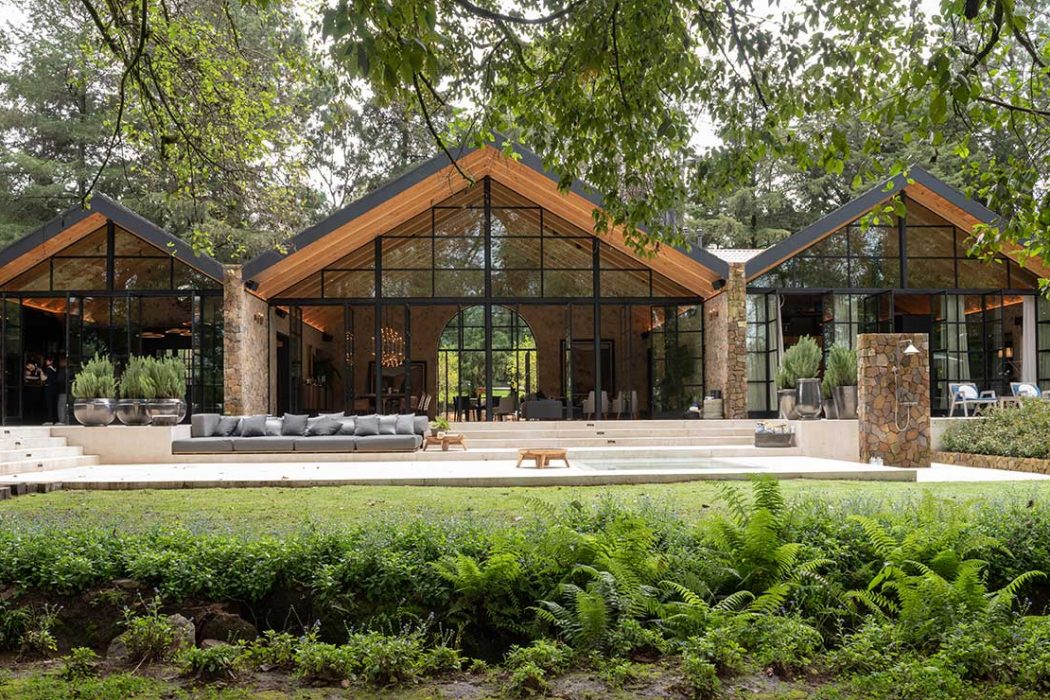 Casa Rancho Avándaro from Chain + Siman consists of three structures each one boasting a gabled roof and stone walls that found the perfect balance between rustic and contemporary design. The middle volume acts as a public space with the living room and dining room, with adjoining wings where you’ll find the kitchen and main bedroom which includes a mezzanine level studio.