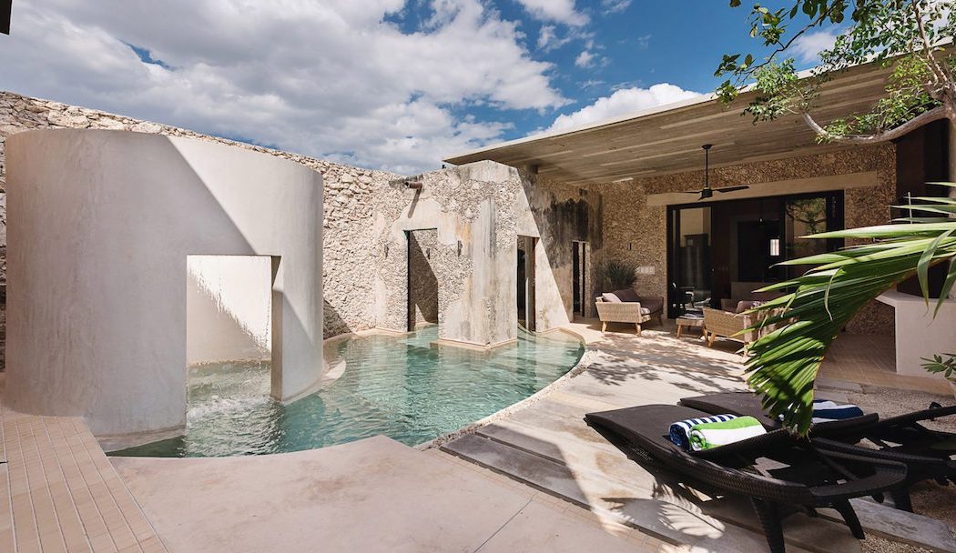 With a pool and patio becoming the focal point for this property, it is very much geared towards outside living and this is driven by the incredibly hot weather typically experienced in Merida in Mexico. Casa Xólotl also has a striking waterfall feature where a door once stood, and steps lead down from an outdoor lounge into the shallow pools below where you can take a dip and get away from the relentless heat. The architects aimed to blend new textures with the original textures, to deliver a contrast with the new areas to those marked by the passage of time.