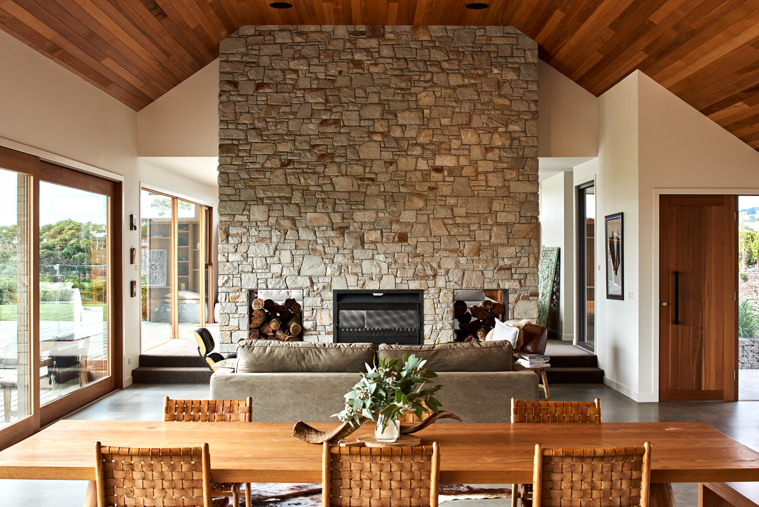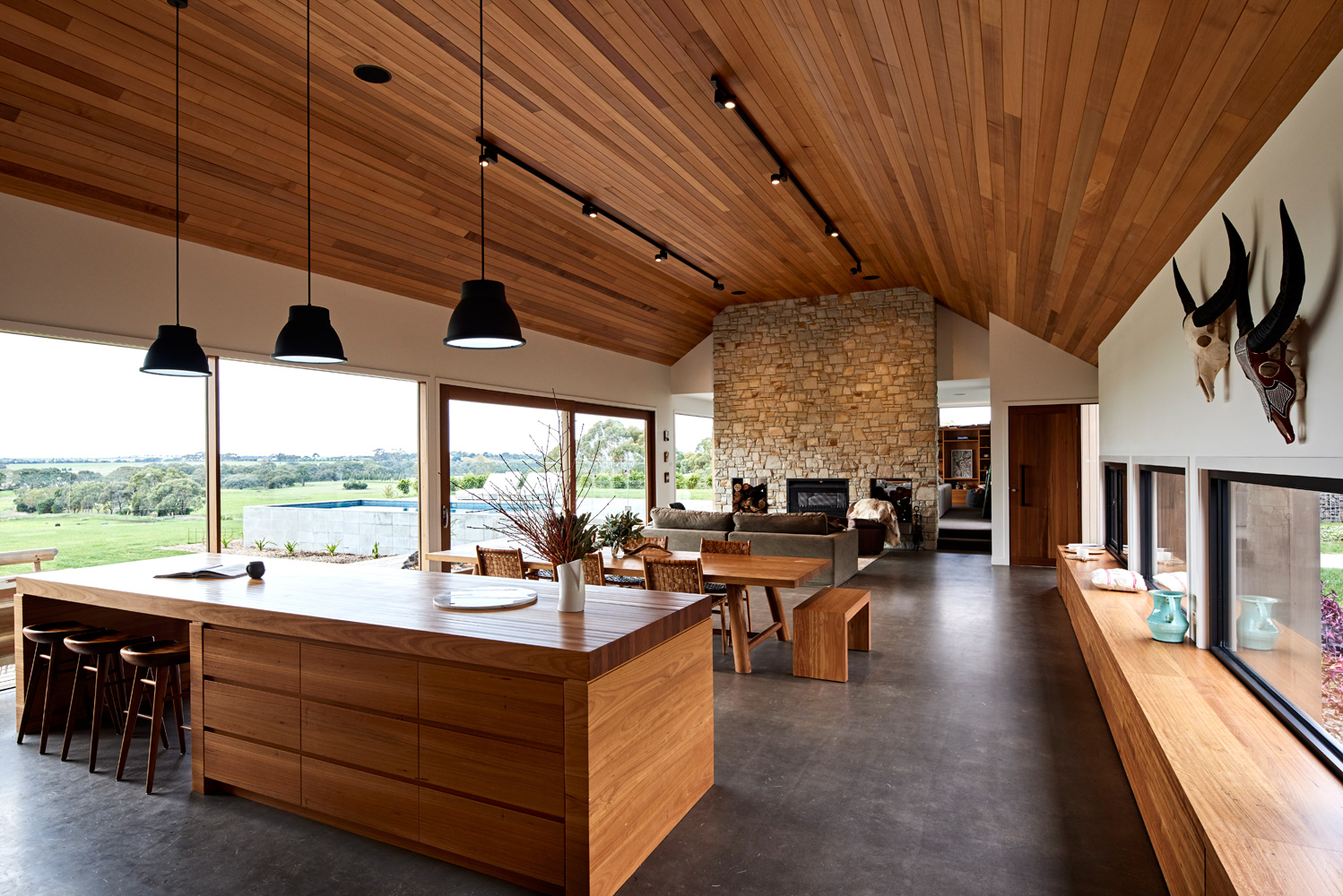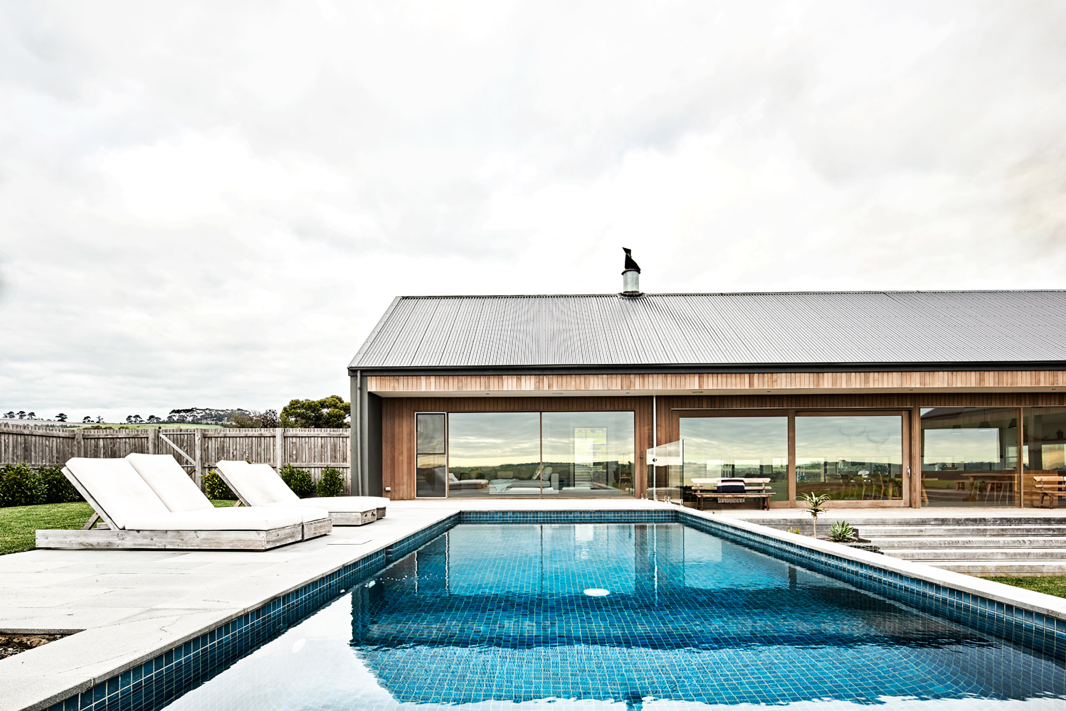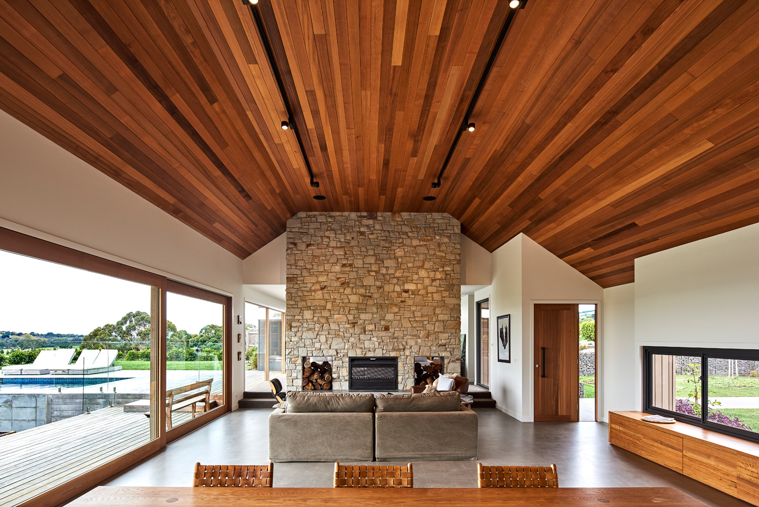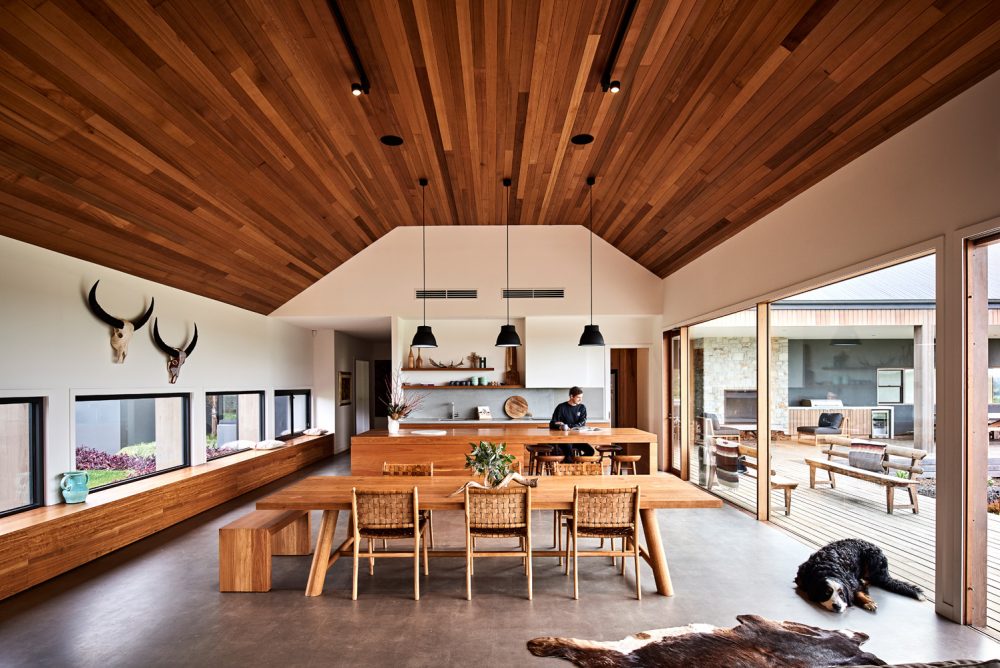 Dan Gayfer’s Ceres House takes its design inspiration from classic, American Ranch style architecture symbolised by its striking picture windows, gabled rooflines and far-reaching single storey floor plan. It boasts a carefully considered orientation which delivers stunning 180 degrees of views of the surrounding countryside whilst also protecting the exterior living spaces from the prevailing winds that regularly sweep across the property. There is a minimalist vibe to the exterior that we’re loving at Coolector HQ and this is exactly the sort of architecture we gravitate towards given the choice.