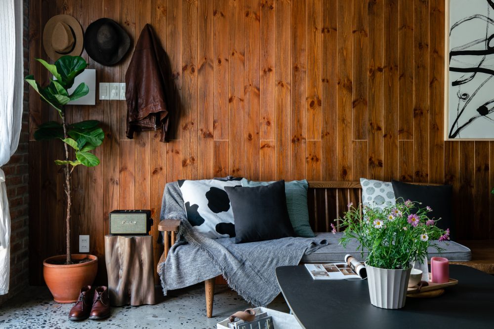 The living room of COI House is actually rather spacious, and the interiors are brought to life with an array of natural wood, in harmony with the green energy of small plants grown by each of the family members. With the desire not only to build a house to live in, the architects have paid particularly close attention to making show its a space in which the family can spend quality time together and enjoy the unique anatomy of the home.