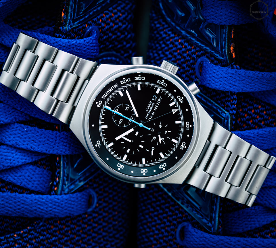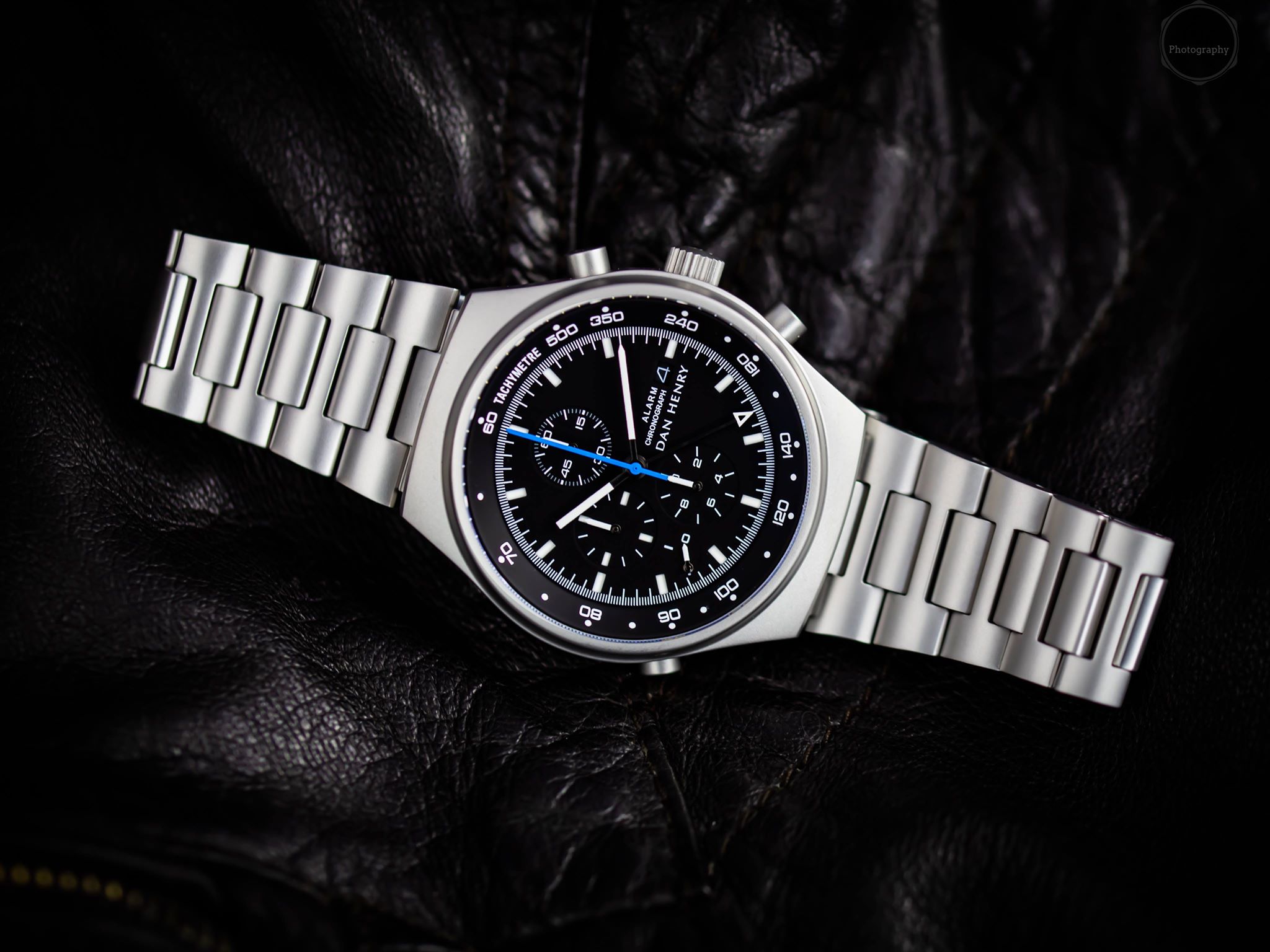The Dan Henry 1972 Chrono Alarm Watch ($350) is so-called because in 1972, the oceans and space had already been conquered and were no longer novelties. It was a time for breaking records on earth. Cars and motorcycles were getting faster, and supersonic flights were more accessible; the Concorde generation was born. In the 1970’s watches became super-watches, with intense emphasis on their engineering. It was a time when engineers became designers, as they created watches born for measurement with craftsmanship and precision and this timepiece is a celebration of this iconic era of design and engineering.