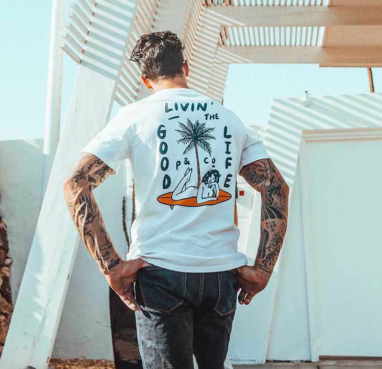 The Dark Daze Collection from P & Co is once again inspired by the spirit for adventure which has typified the brand since their inception. The endless roads, palm trees and hazy sunsets that serve as a catalyst for unforgettable adventures and trips into the unknown make for the perfect muse for this eye-catching new collection from P & Co and they typography and illustration inspired apparel is on point once again.