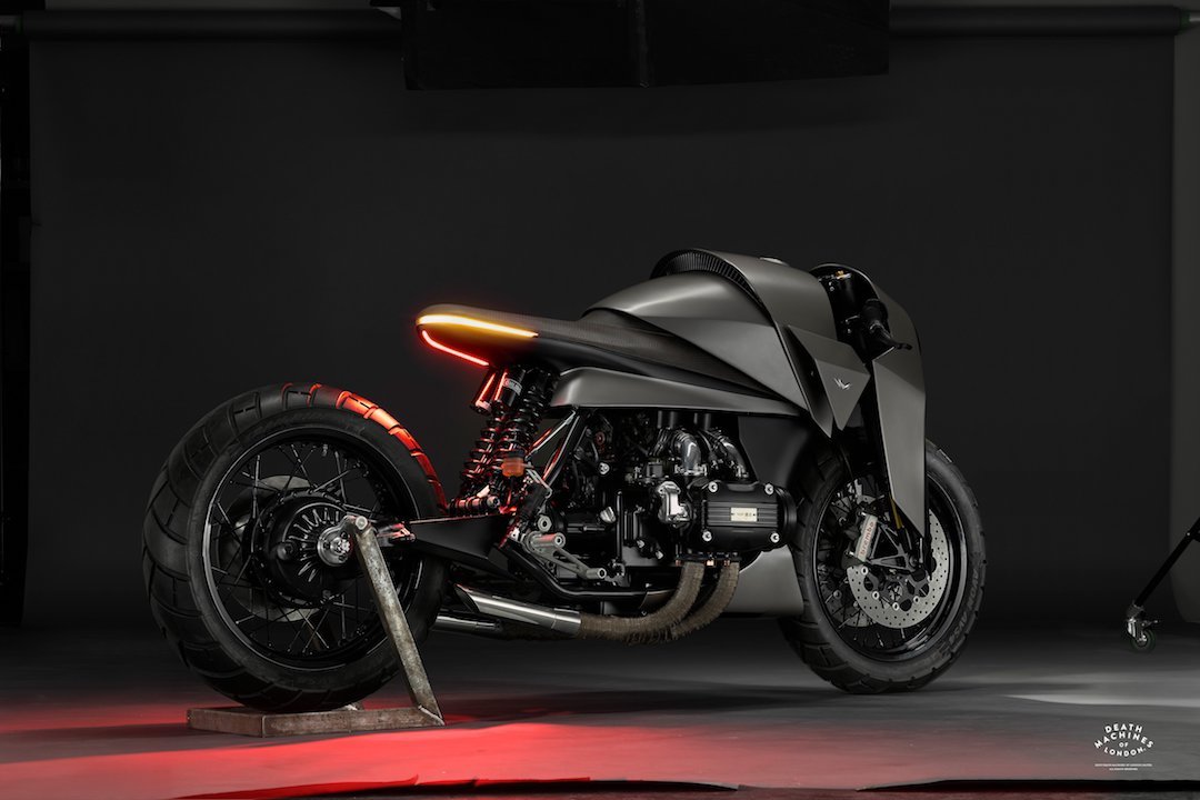 In 1570, Honda Tadakatsu made a name for himself as one of japan’s most celebrated samurai generals, beating an enemy who outnumbered him 50 to 1 without so much as a punch being thrown, just because they thought he was either insane, deadly, or both. Move on a few centuries to 1930, where Kenzo Tada spent forty days travelling to europe by rail and sea to participate in the Isle of Man TT where he would become the event’s first Japanese racer. Then, in 1977, the Honda Motor Company delivered another Gold Wing GL1000 from its production line and, all these factors combined, to lead to the breathtaking Kenzo Motorbike from Death Machines of London.